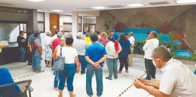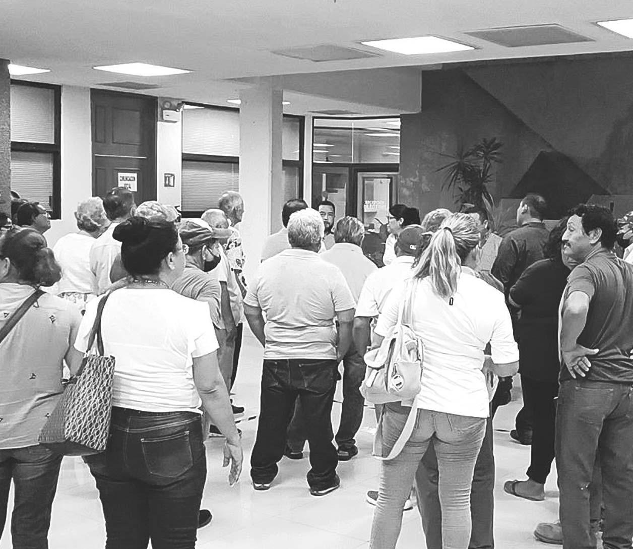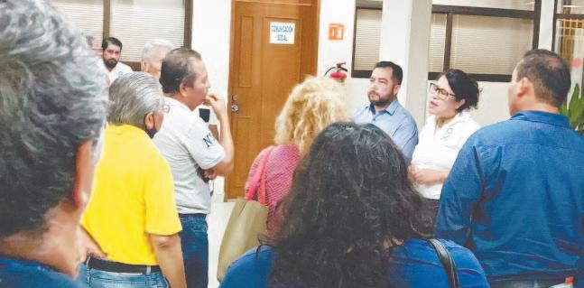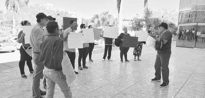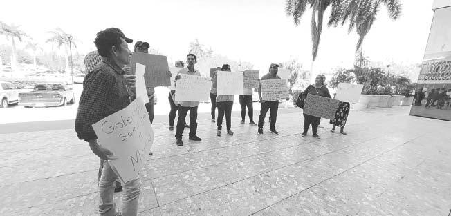 EN el Palacio de Gobierno, los inconformes señalaron que la edil Ángela Cámara NO les paga, pero sí tiene a familiares en la nómina.- (A.
