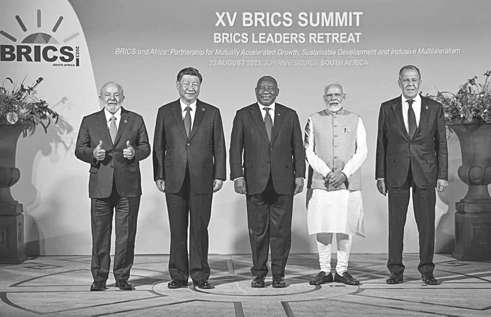Brasil, India y Sudáfrica y seguirá “gestionando sus relaciones con China y oponiéndose a la agresión rusa contra Ucrania”, agregó. El bloque representa actualmente el 23 por ciento del PIB mundial, el 42 por ciento de la población y más del 16 por ciento del comercio global.