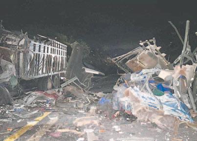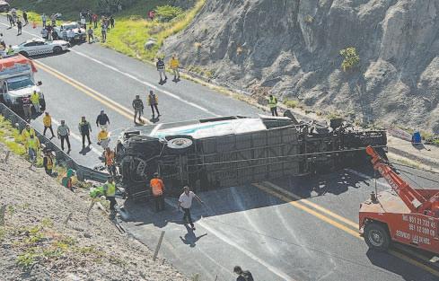 OAXACA, Oax.- Un choque entre un camión tipo Torton y un autobús de pasajeros en la carretera Miahuatlán-Coixtlahuaca dejó ayer por la madrugada un saldo mortal de 16 personas fallecidas, entre ellas, 15 mexicanos y un venezolano. De acuerdo con el Instituto Nacional de Migración (INM), en el
