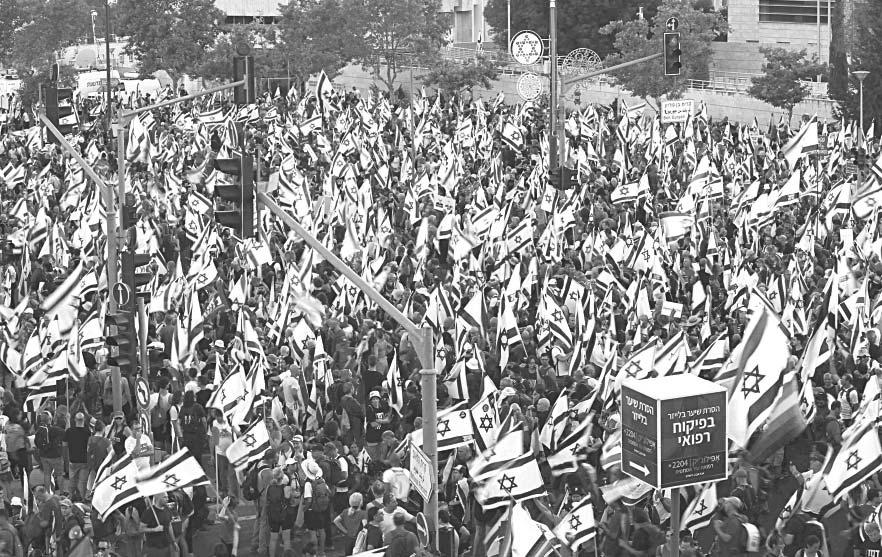 TEL AVIV.- Decenas de miles de israelíes se manifestaron ayer en Tel Aviv y cerca del Parlamento en Jerusalén para reafirmar su oposición a una controvertida reforma judicial que enfrenta una votación crucial en los próximos días.