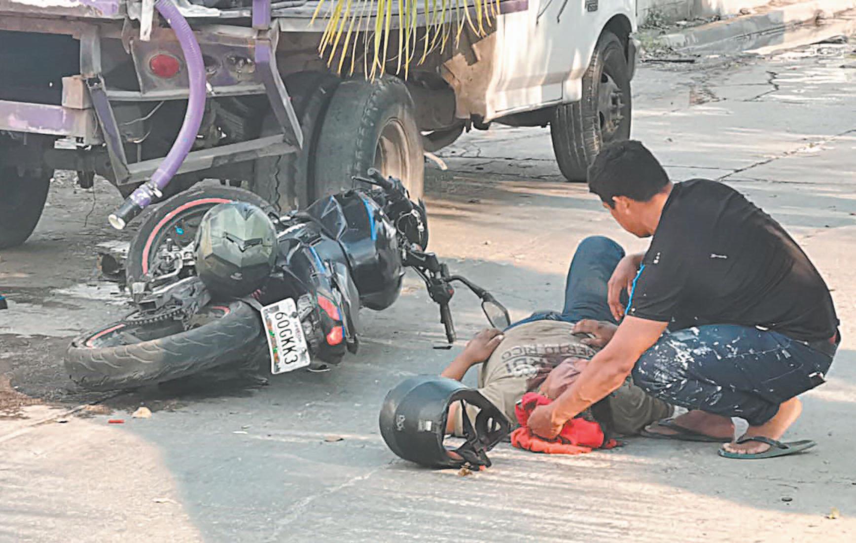 CON severas heridas en el rostro y con el casco destrozado resultó el empleado de una vulcanizadora en la colonia Petrolera.- (Ricardo Jiménez)