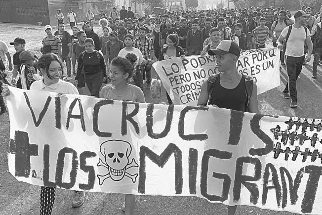 Los migrantes portan cruces y pintaron mantas con las consignas “El Estado los mató”, “Viacrucis migrante” y “Lo podrás negar, pero no ocultar porque todos sabemos que es un crimen de Estado”, además, exigen al Gobierno federal el tránsito libre por el país.