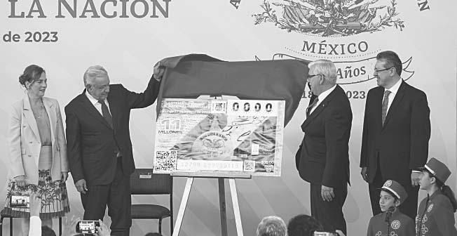 Ante los guardianes del patrimonio y la historia de la nación, López Obrador recorrió la Galería 5 y develó un billete de la Lotería Nacional alusivo a los 200 años de la creación del Archivo General de la Nación, acompañado de dos “niños gritones” de la Lotería Nacional y del director general de la institución, Marco Antonio Mena Rodríguez. (Redacción POR ESTO!)