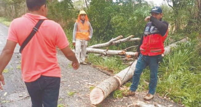 Cae árbol en carretera por viento y agua