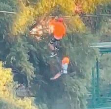 mientras que los otros tres con mazos intentaban romper los cristales.