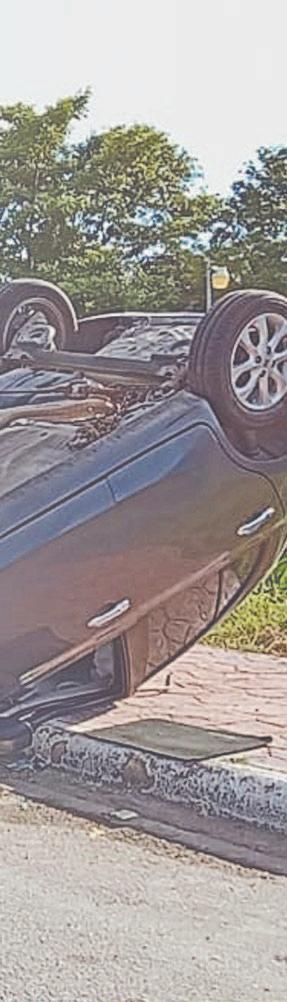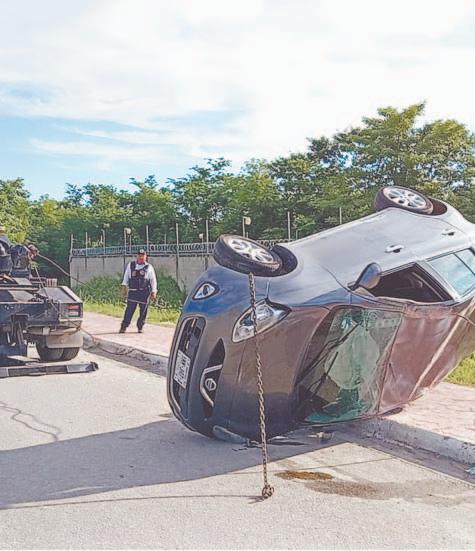 Por usar el teléfono celular, conductora vuelca automóvil