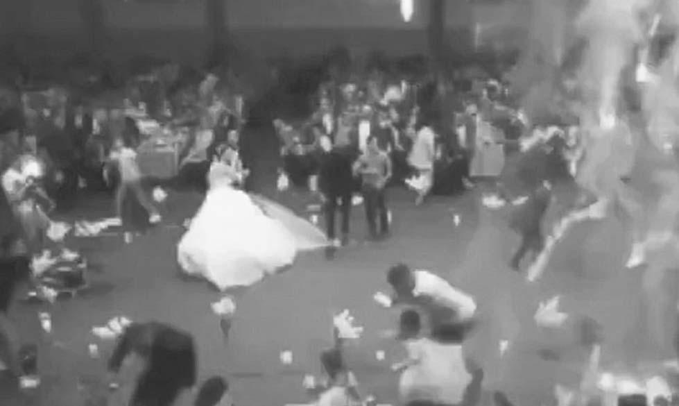 En videos que circulan redes sociales, se puede ver a la pareja de novios bailando cuando comienza a caer a la pista de baile parte de los adornos en llamas. En otro clip, se ve a los invitados de la boda salir corriendo del lugar en el que se organizó la fi esta, mientras una densa capa de humo sale del inmueble.