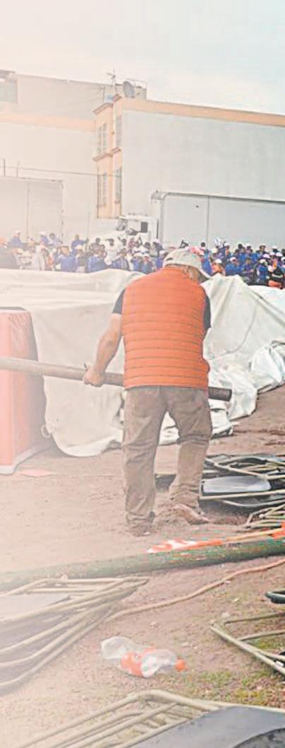 Debido a que varias personas ya estaban congregadas en el punto de reunión, varias quedaron atrapadas cuando la lona se vino abajo, además, los tubos que sostenían la carpa también se derrumbaron por las rachas de aire.