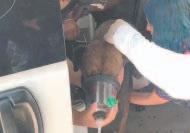 Al ver eso, las personas comenzaron a grabar la situación y a defender al animal, que al final se levantó después de las pa-