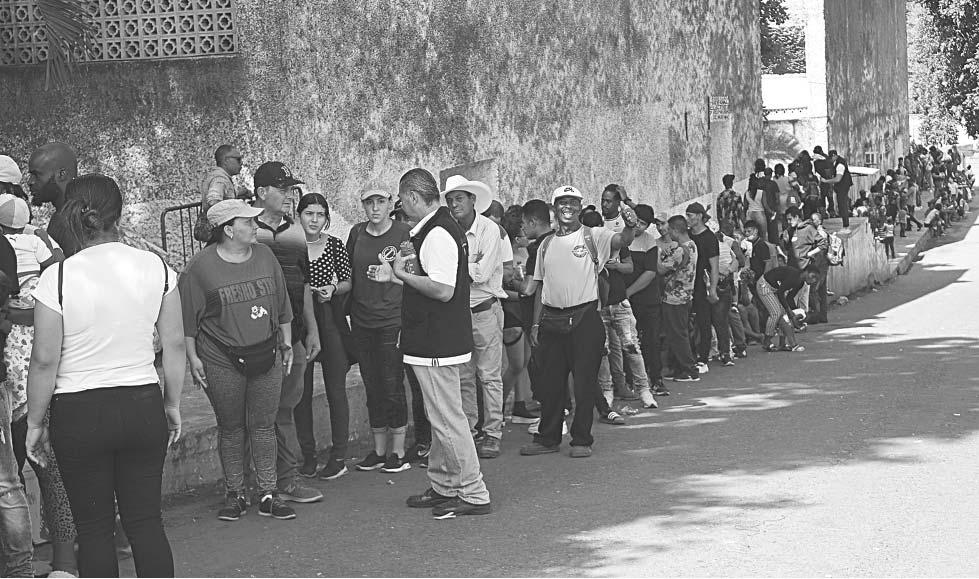 Durante una reunión en la explanada de la Presidencia Municipal de Villa de Comaltitlán, el líder de la agrupación Pueblos Sin Fronteras, Irineo Mújica Arzate, expuso a la población migrante que el INM ofrecía realizar un censo de todas las personas que se encuentran en el lugar, para proceder a su regularización migratoria.