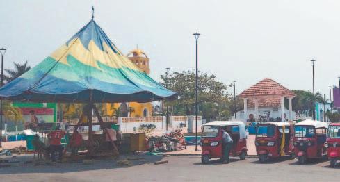 Minutos antes de las 17:00 horas de ayer se tenía previsto el arribo de la aspirante al cargo de Gobernadora, pero una ráfaga de viento causó destrozos en el lugar y derribó la lona que se había colocado para la realización del evento.