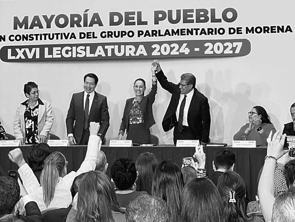 En un hotel de la Ciudad de México, Sheinbaum Pardo dirigió un mensaje durante la reunión constitutiva del grupo parlamentario de Morena de la Cámara de Diputados para la LXVI Legislatura, en el periodo 2024-2027.
