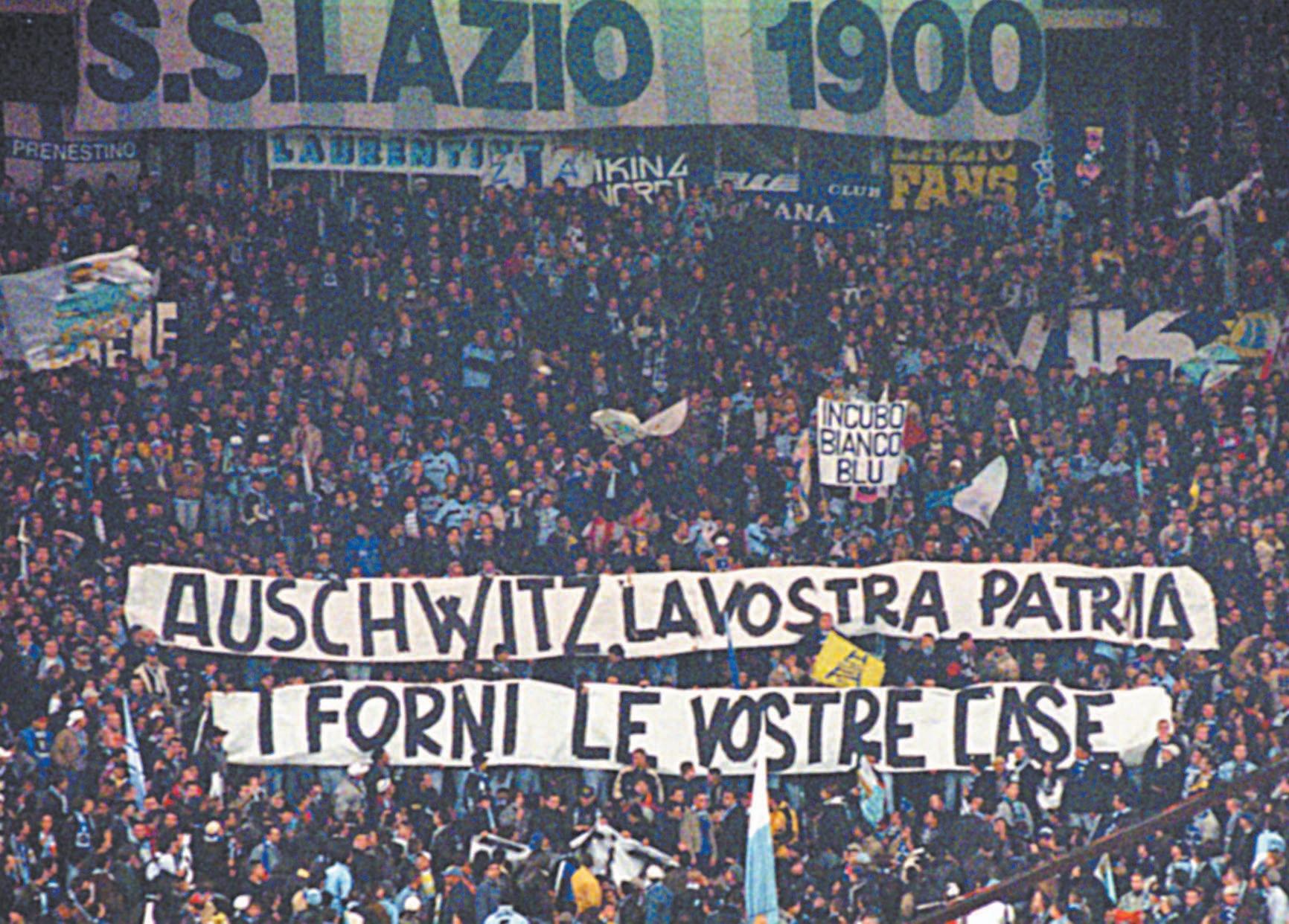 El hombre viste también shorts rojos, blancos y negros, colores asociados al régimen nazi.