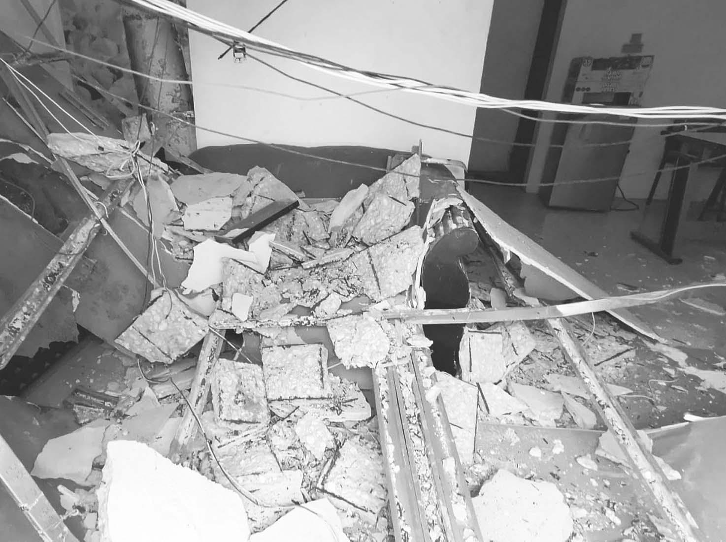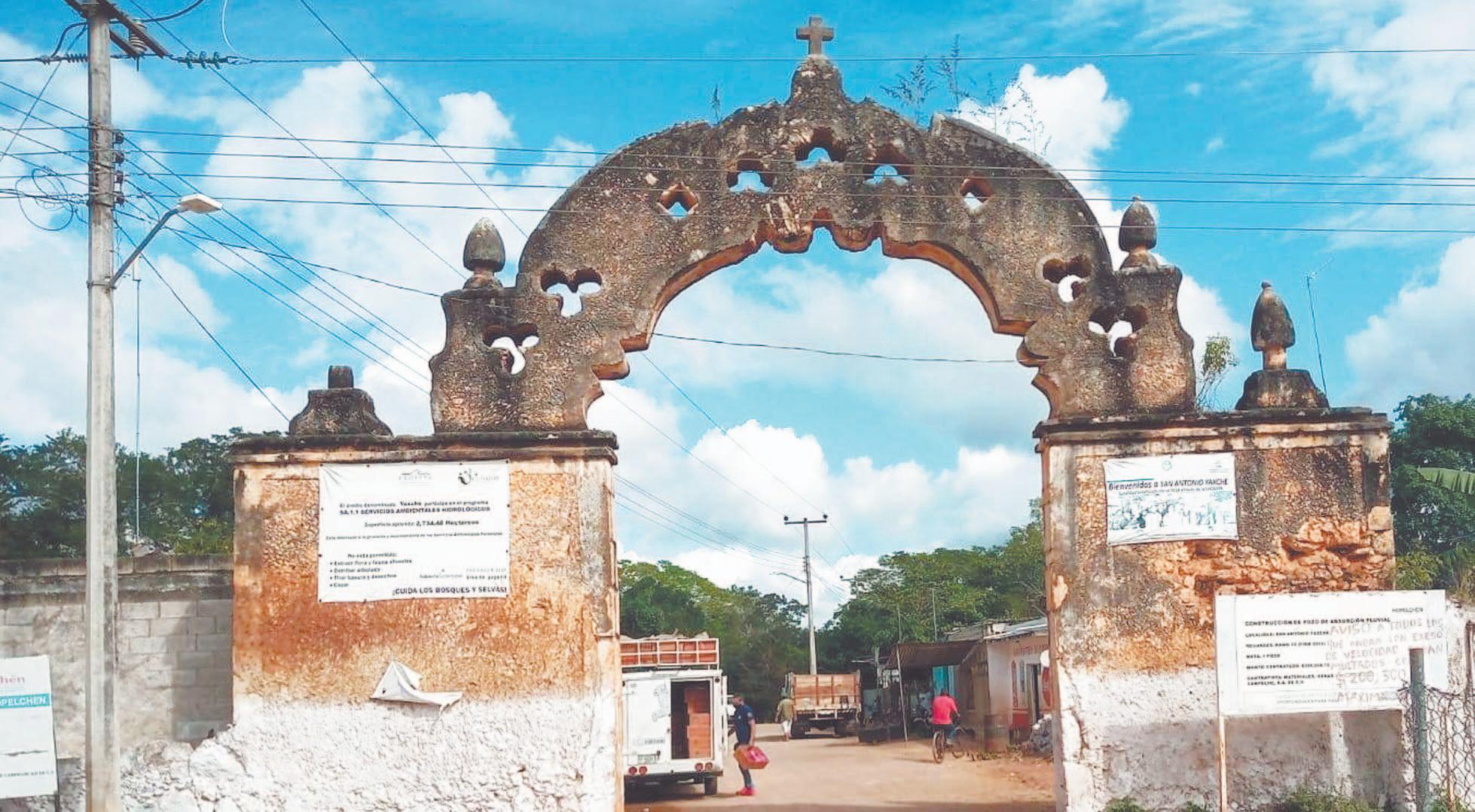 “ESTA joya arquitectónica está ubicada a la entrada de la comunidad y tiene más de 100 años; en caso de que el Instituto Nacional de Antropología e Historia NO se comprometa a atender las grietas, lo haremos nosotros”, señaló el comisario municipal Héctor Evelio Euan Euan.- (Jorge Amado Caamal)