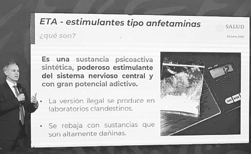 “Más de 46 por ciento de las personas atendidas por adicciones acude a servicios de salud por consumo de metanfetaminas, debido a su enorme potencial adictivo, que inevitablemente tiene impacto negativo en los ámbitos emocional, físico, social y familiar”, afirmó.