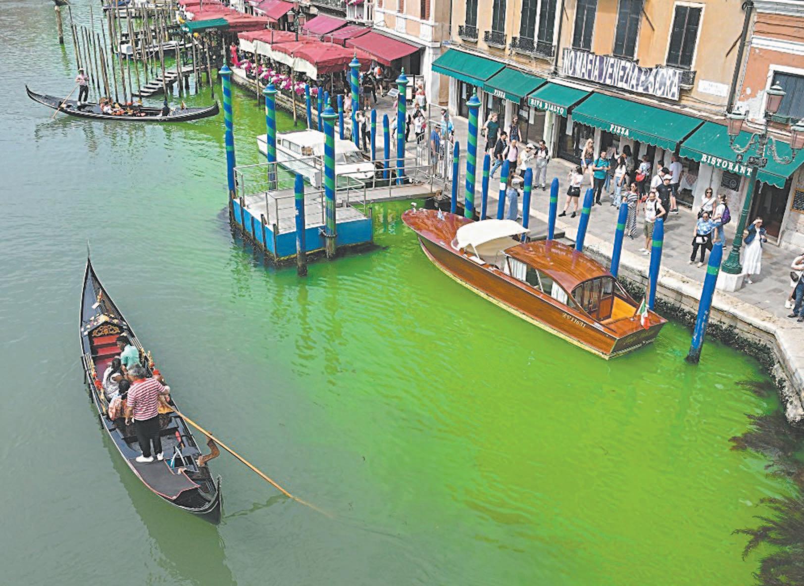 Ayer, los italianos se vieron sorprendidos por la aparición de un misterioso líquido verde en las aguas del Gran Canal de Venecia del cual se desconoce hasta ahora quiénes fueron los responsables ya que es un líquido que se utiliza para descubrir dónde hay fugas y son usadas para los que hacen expoliaciones bajo el agua.