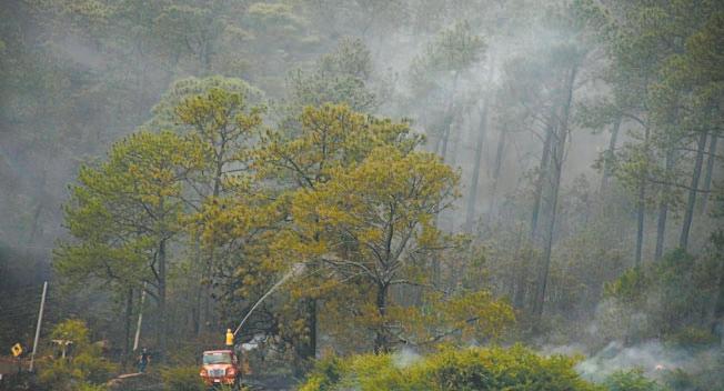 “Ya son 298 bomberos brigadistas de los tres niveles de Gobierno, luchando al límite de sus capacidades contra el fuego en los parajes