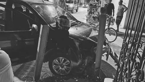 CARLOS H.G.A., (a) “El Ajitos”, NO pudo esquivar la unidad de pasajeros estacionada en el paradero; se impactó en un costado.- (Dismar Herrera)