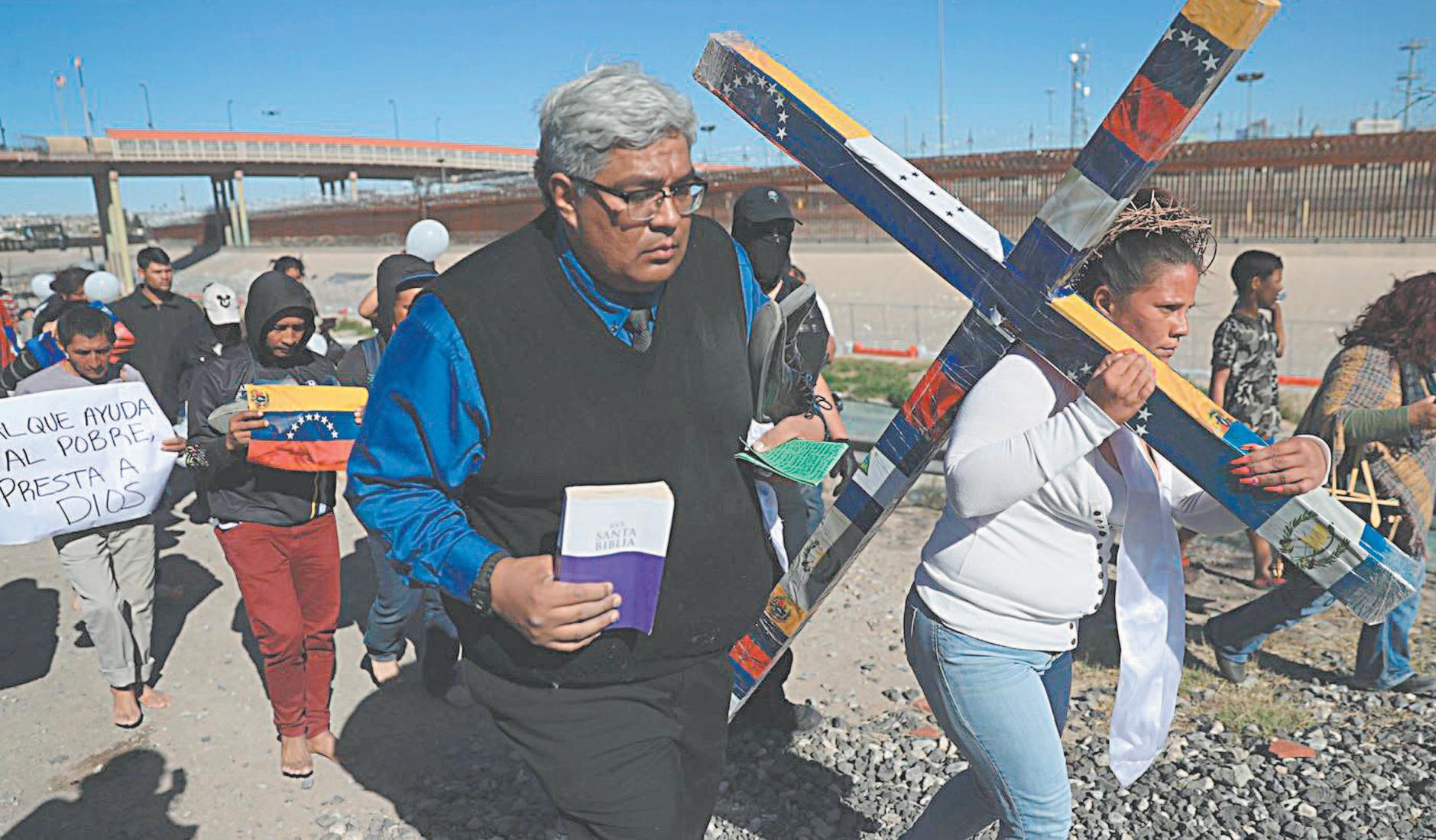 Los migrantes, en su mayoría venezolanos que se mantienen varados en esta ciudad fronteriza, participaron en la representación de la Crucifixión de Cristo, caminaron en caravana, en muchos casos se quitaron los zapatos para andar descalzos hasta llegar a las instalaciones del Instituto Nacional de Migración (INM), donde ocurrió la tragedia.
