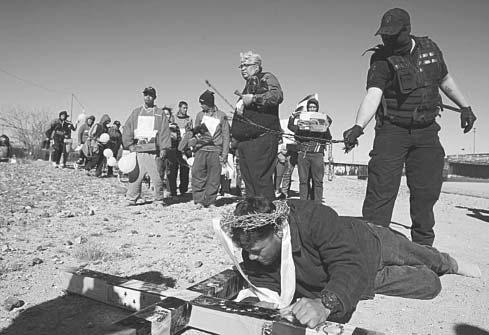 CIUDAD JUÁREZ, Chih.- Un centenar de migrantes escenificaron ayer un viacrucis con el que caminaron por los límites del Río Bravo, como homenaje a los 39 migrantes muertos por un incendio en la estación migratoria del Gobierno en Ciudad Juárez y para exigir justicia y un memorial a las autoridades.