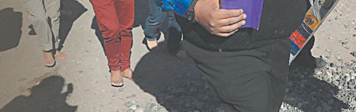 La dependencia señaló que está acompañada por su familia y su estado de salud es reportado como estable. Autoridades informaron que los cuerpos de los padres de Regina “N” fueron entregados a sus familiares. (Agencias) Ilegales caminaron descalzos rumbo a instalaciones del INM. (EFE)