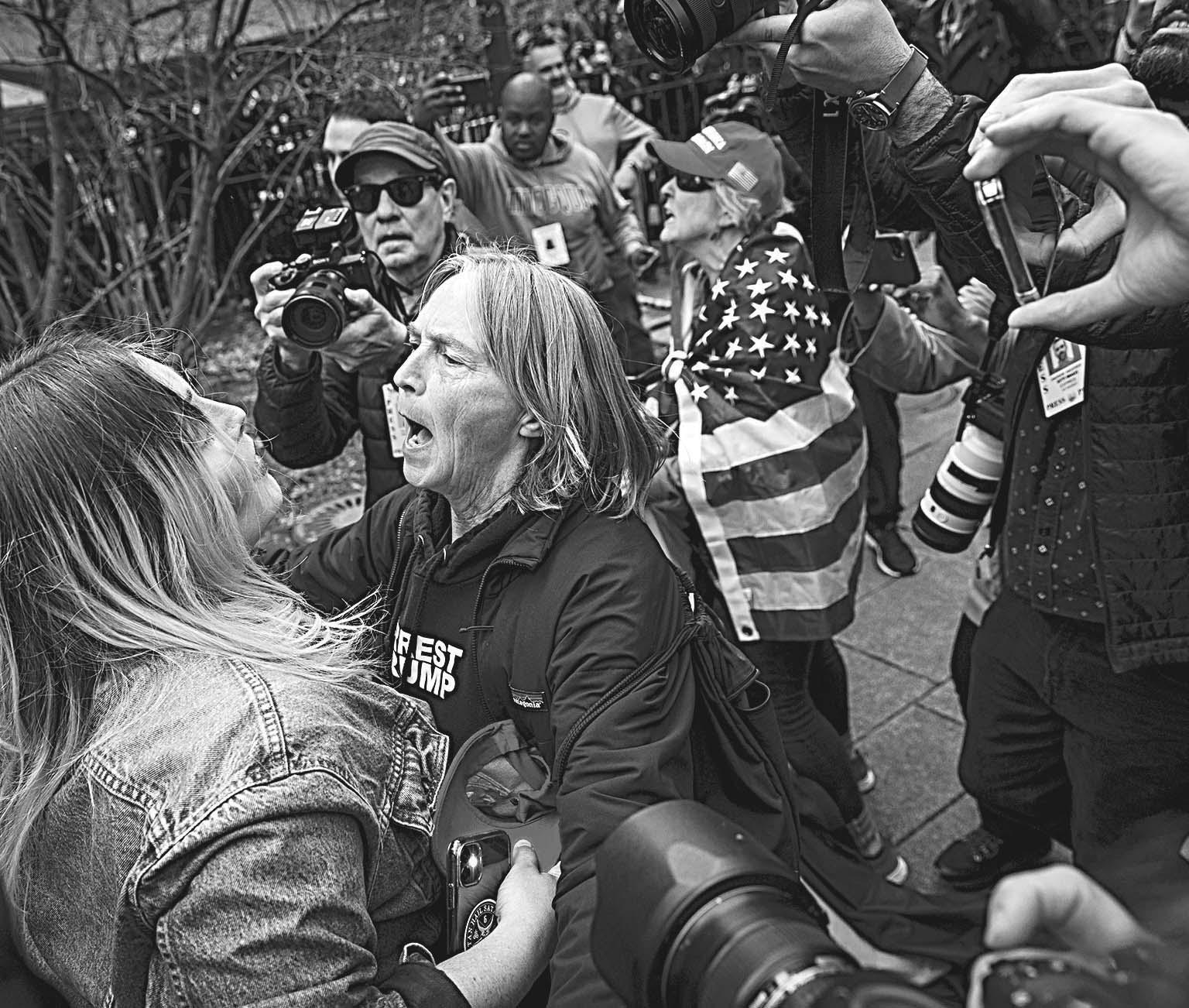 “Trump o muerte” o “Haz Estados Unidos Grande de Nuevo” (su lema, MAGA, en inglés), rezaban pancartas, banderas, gorras y camisetas de algunos. “Trump miente todo el tiempo” o “Enciérrenlo”, proclamaron opositores. El caso de Trump, que ya fue objeto de dos intentos de desti-