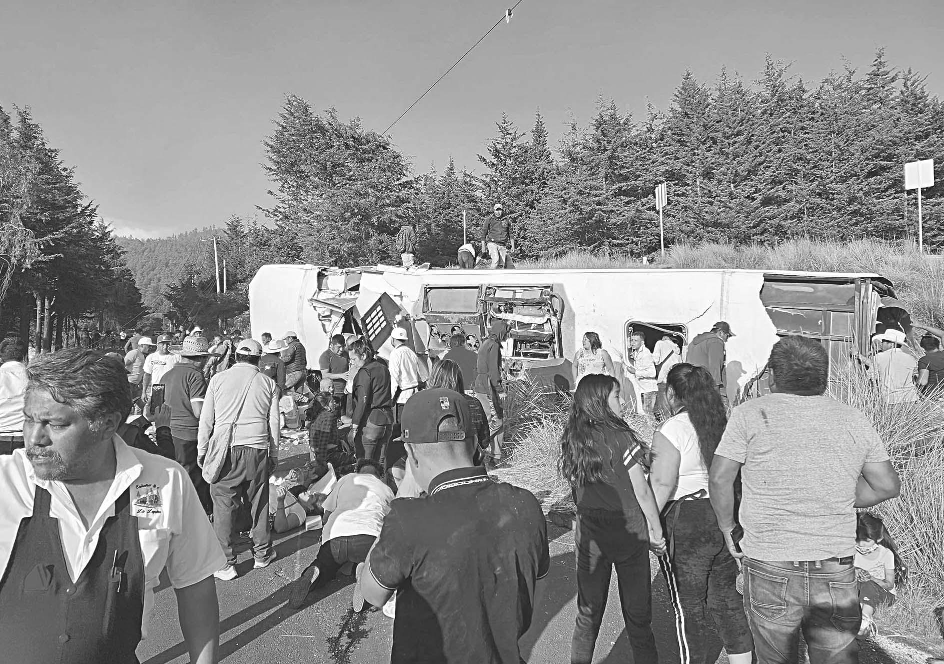 El fatal accidente ocurrió ayer por la tarde en la carretera México-La Marquesa en el km 34.5 en el Valle Turimex, en la desviación a Chalma, cuando el operador del autobús de la empresa Flecha Roja, con número económico 202, perdió el control hasta salir de la cinta asfáltica.