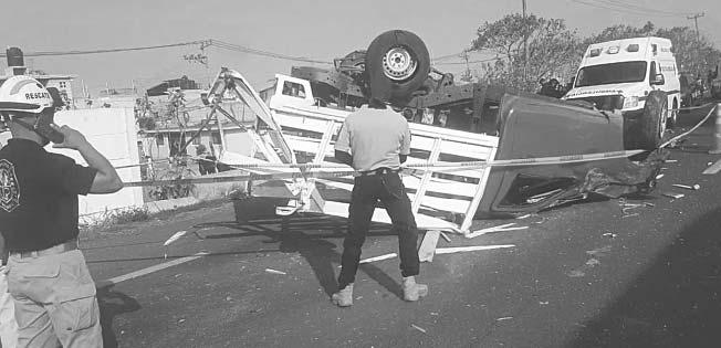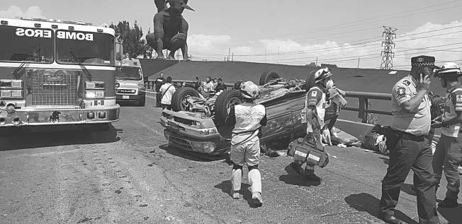 CUATRO de los heridos fueron llevados al hospital Janell Romero en un automóvil particular; el conductor resultó ileso.- (J. Guevara)