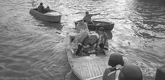 Fueron los lancheros de la zona quienes sacaron del agua a los dos tripulantes de la avioneta, una aeronave tipo PIPER PA24, que