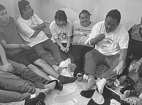 paired planean sentarse en el patio cubierto de pasto de la escuela y escuchar un pequeño dispositivo conocido como caja LightSound, que traduce los cambios de luz en sonidos.