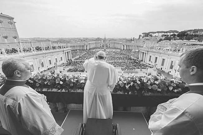 Durante la liturgia, que comenzó con el rito del resurrexit, numerosos fieles romanos y peregrinos de todo el mundo llenaron la plaza de San Pedro desde primeras horas de la Pascua de Resurrección.