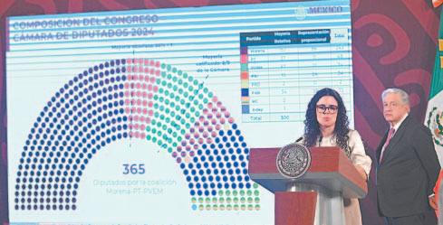 De acuerdo con Luisa María Alcalde, la composición del Congreso sería de 243 diputados por Morena, 48 por el Partido del Trabajo (PT) y 74 por el Partido Verde Ecologista de México (PVEM), lo que implica que los partidos aliados de la Cuarta Transformación tendrán una mayoría calificada en la Cámara de Diputados, es decir, de dos terceras partes, lo que conlleva la posibilidad de llevar a cabo reformas constitucionales. Indicó que el PRI contará con cerca de 34 diputados; el PRD, dos; el PAN, 72; Movimiento Ciudadano, 26; e independientes, uno, para un total de 500 diputados y diputadas. En el caso de la composición de la Cámara de Senadores, Alcalde dijo que aproximadamente, Morena tendrá 60 senadores por Morena; 8 por el PT; 14 por el PVEM; 17 por el PRI; dos por el PRD; 22 por el PAN y cinco por Movimiento Ciudadano, para dar un total de 128 senadores.