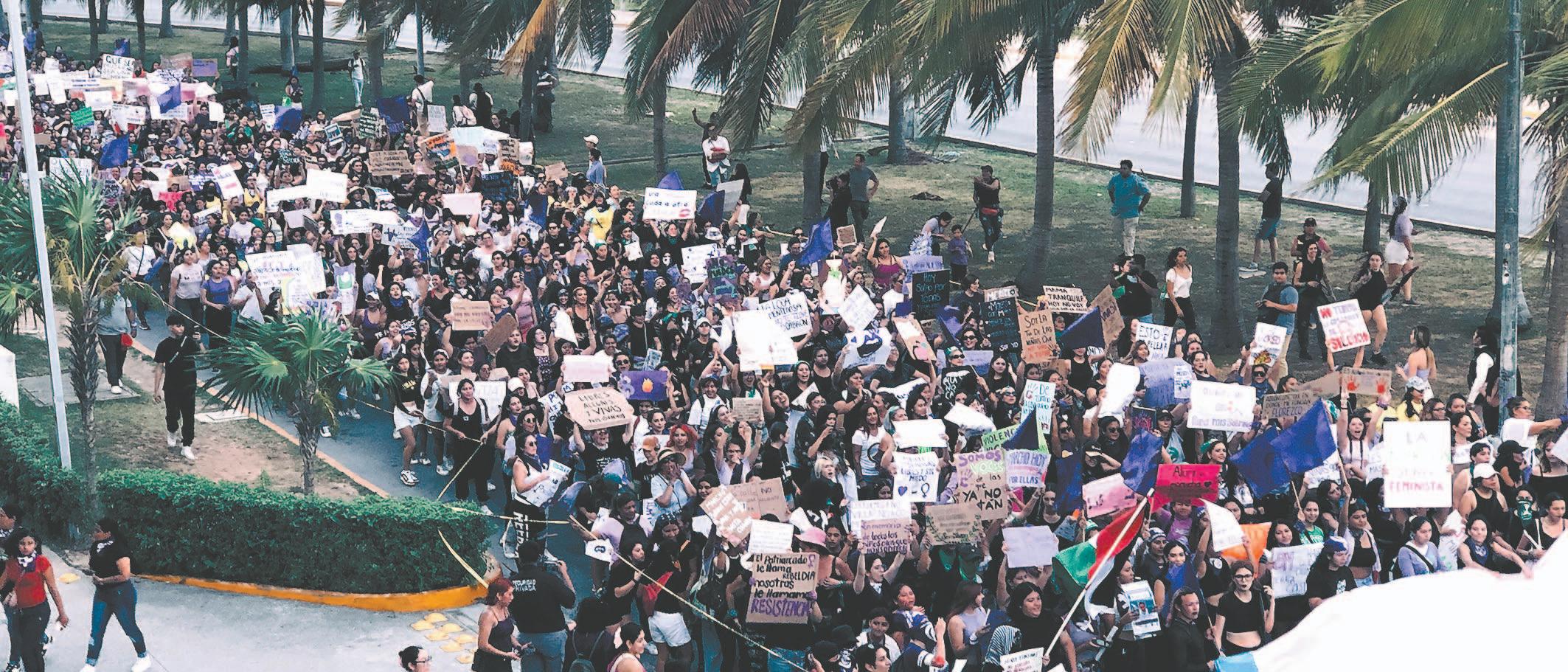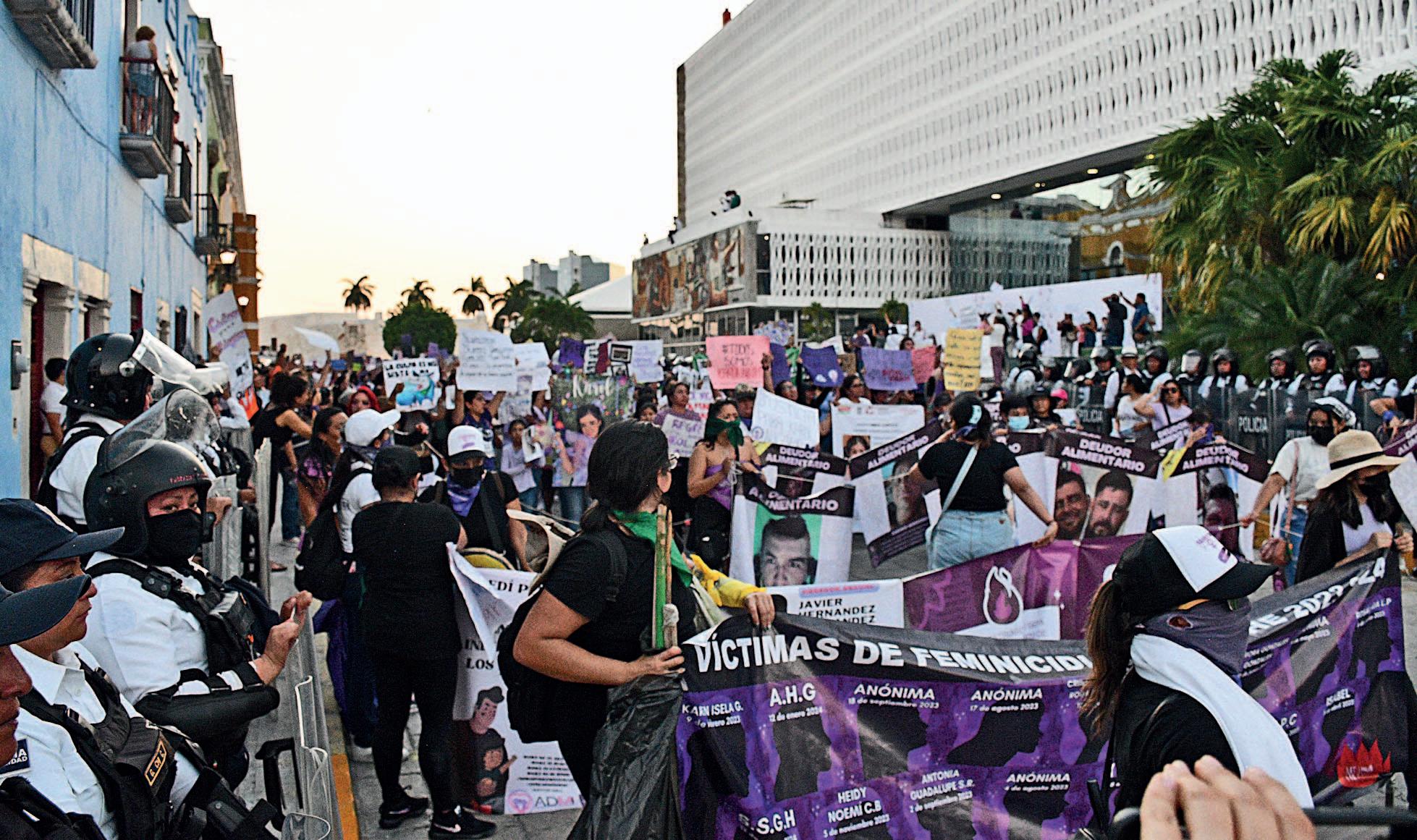 granaderos apiñados alrededor del Palacio de Gobierno Estatal, donde las manifestantes prendieron varias fogatas en honor a las víctimas de feminicidios. Como en cada ciudad del país, las manifestaciones grandes o pequeñas, pacíficas o llenas de demostraciones de inconformidad con los gobiernos estatales, la marcha del Día Internacional de la Mujer unió a millones de mexicanas. (Agencias)