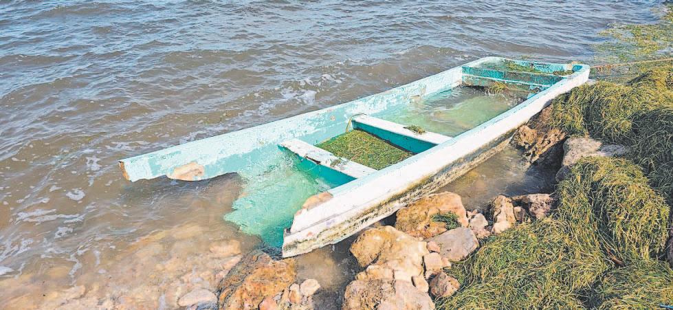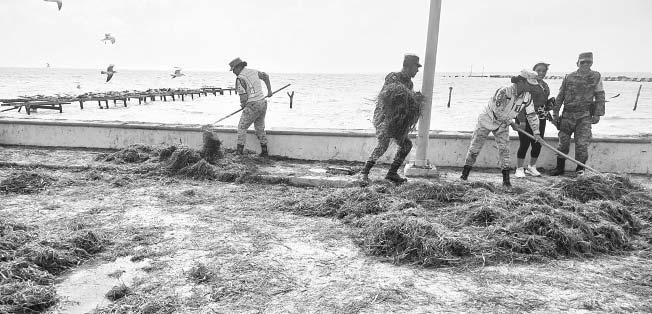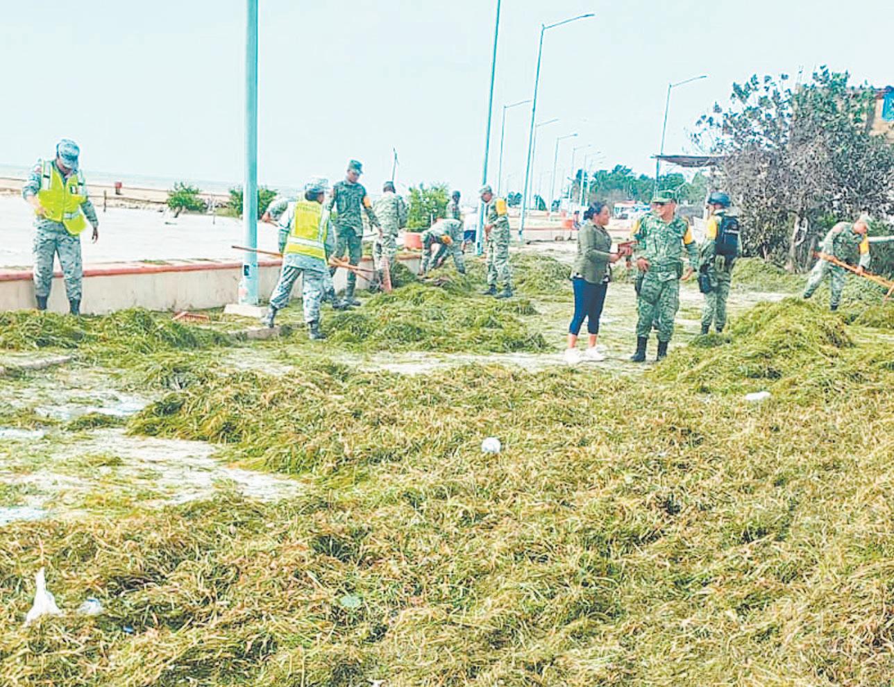 LA ínsula de Calkiní está invadida por sargazo y basura que las olas regresaron a tierra firme; quienes NO alcanzaron a resguardar sus lanchas perdieron su patrimonio (1). En la limpieza hallaron un flamenco rosa lesionado (2) y una tortuga de carey muerta (3).- (Erik C.)