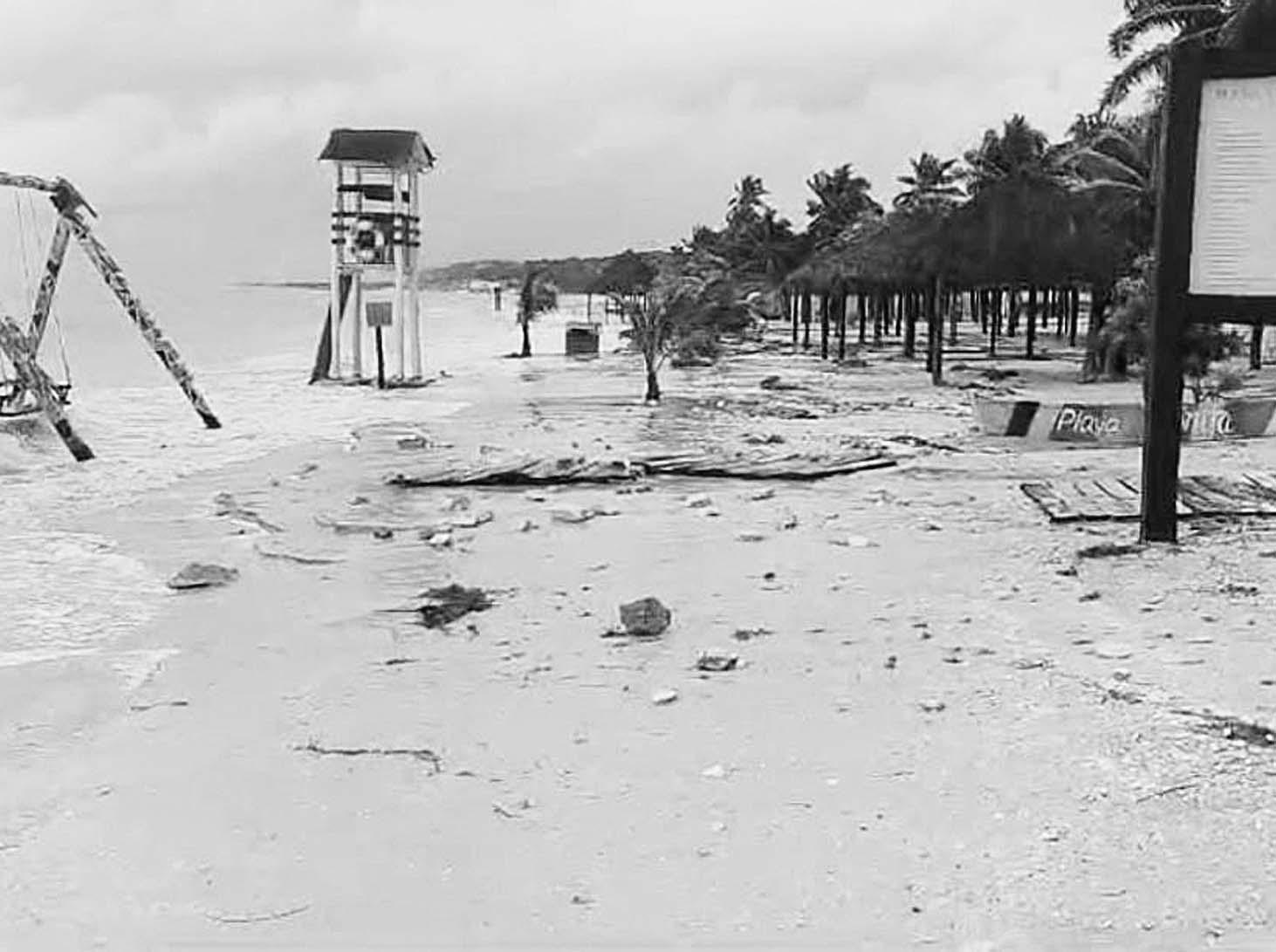 EN el principal balneario del municipio de Campeche el panorama es desolador; el campamento para la anidación de quelonios también resultó afectado.- (Especial)