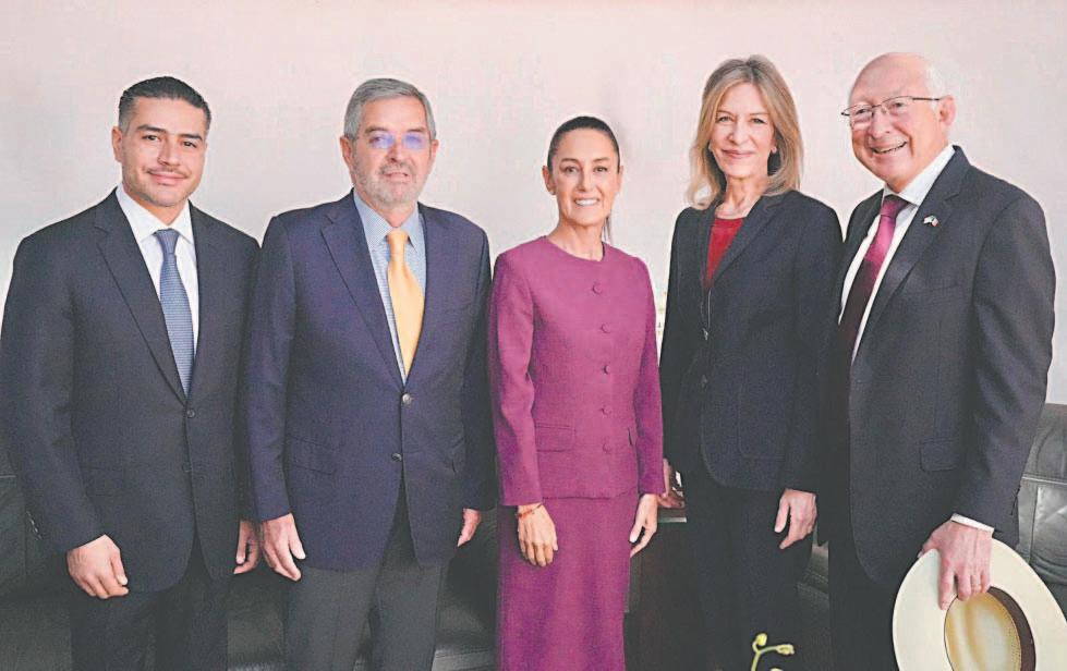 nador Omar García Harfuch y Juan Ramón de la Fuente, coordinador de transición; y Sherwood-Randall contó con el acompañamiento del embajador de Estados Unidos en México, Ken Salazar. Sheinbaum acudió sola a una conferencia de prensa posterior al encuentro y explicó que la razón porque participara García Harfuch fue que explicara la estrategia de seguridad que se aplicó en la Ciudad de México cuando ambos fue-