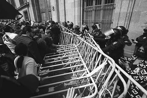 así como la base trabajadora de la Ciudad de México. Poco a poco, comenzaron los enfrentamientos entre los policías y los manifestantes. Con el objetivo de dar portazo una vez más al recinto, cada vez más grupos de trabajadores se congregaron a los alrededores de Palacio Nacional, donde se llevó a cabo el cabo Diálogo Anual de Alto Nivel de empresas de Estados Unidos y México (CEO Dialogue). Minutos antes, decenas de empresarios e inversionistas salieron por la misma calle y conversaron con medios de comunicación presentes. (Agencias)