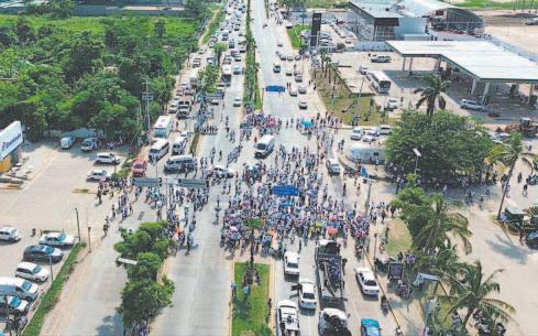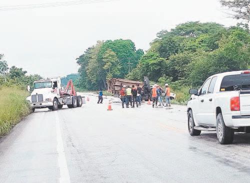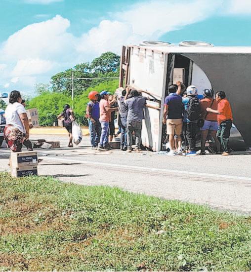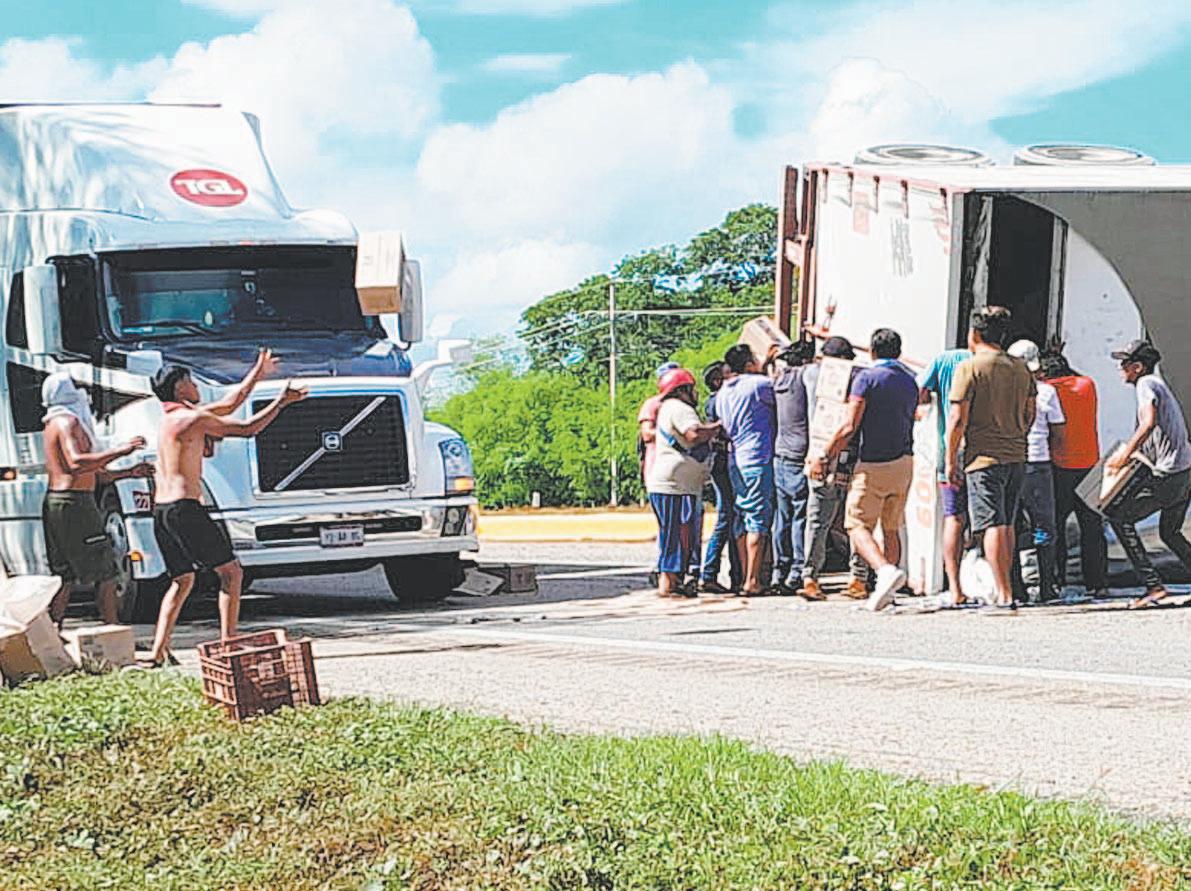 Los zopilotes del asfalto rapiñan un tráiler con galletas que volcó en Bacabchén; hay un detenido
