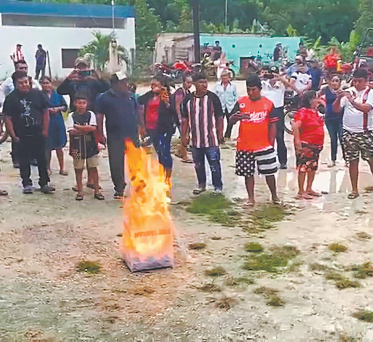 LOS candidatos a autoridades municipales y los pobladores de Cancabchén acordaron reprogramar la votación y quemaron las urnas con boletas para evitar fraudes.- (M. Koh)