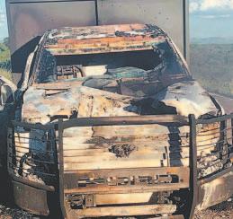 Horas más tarde, a la altura del kilómetro 2+500 de la misma arteria, se localizó otra pick up de doble cabina completamente calcinada. En el lugar peritos aseguraron diversos elementos balísticos y dos granadas, una percutida y otra sin percutir.
