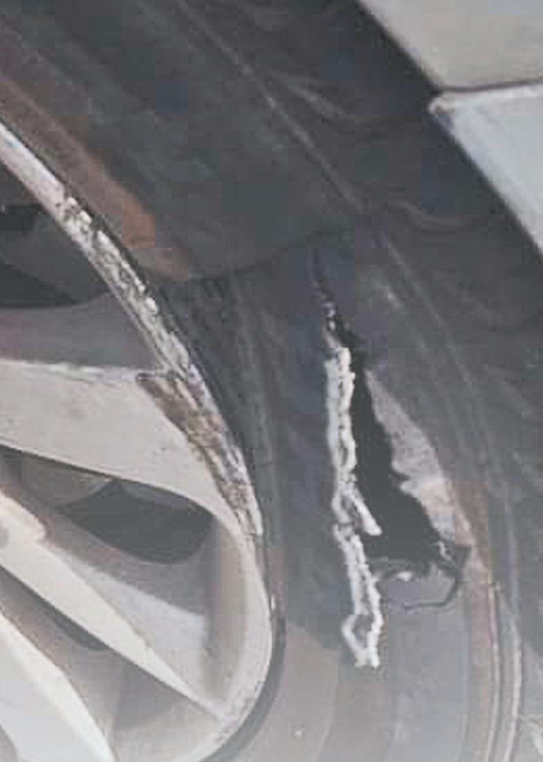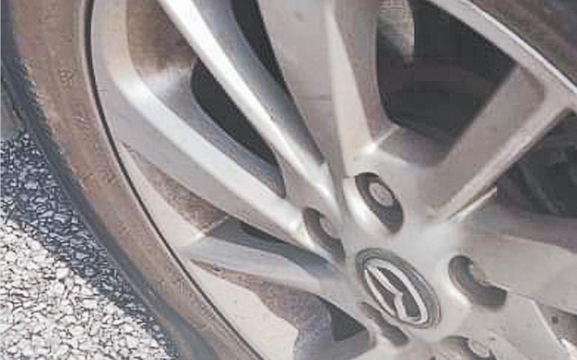 Ponen clavos en reductor de velocidad y destrozan llantas