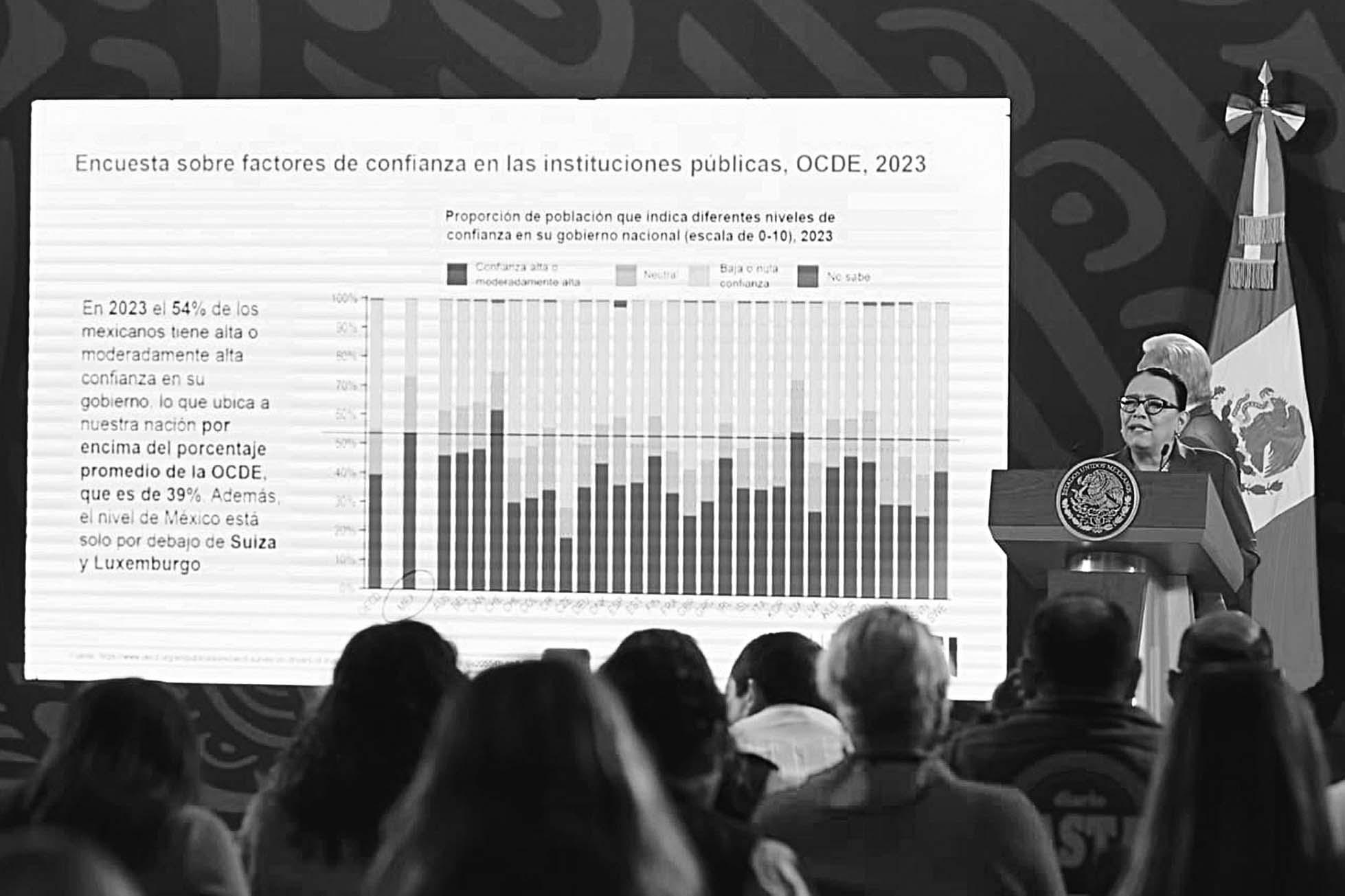 Otros puntos que destacó Rosa Icela Rodríguez en su presentación fueron la reducción en la percepción de corrupción, así como los altos niveles de aprobación del Presidente y del Gobierno federal.