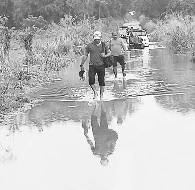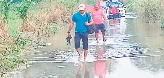 está a punto de quedar incomunicada por los encharcamientos en la principal vía de acceso; los pobladores deben caminar para llegar a sus hogares ya que se cerró el paso a vehículos pequeños. El Río Candelaria se ubica a solo 20 centímetros de alcanzar su nivel de alerta.- (Emmanuel Pérez)