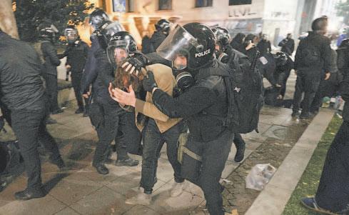 de Batumi, en el Mar Negro. The Associated Press vio en Tiflis a manifestantes perseguidos y golpeados por la Policía mientras se congregaban frente a la sede del Parlamento del país. La Policía antidisturbios utilizó cañones de agua para alejar a los manifestantes del edificio y luego avanzó para empujarlos más atrás, a lo largo de la avenida Rustaveli, el principal bulevar de la ciudad. La Policía también ejerció fuerza excesiva contra miembros de los medios de comunicación y utilizó altavoces para gritar palabrotas e insultos a las multitudes. (Agencias)