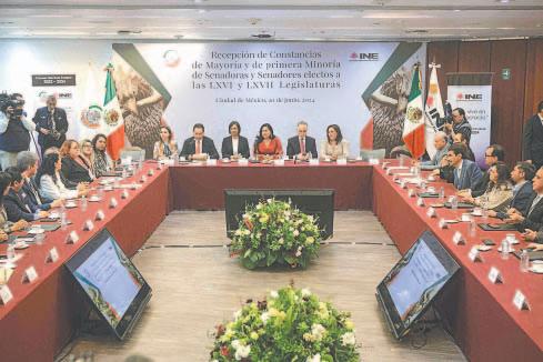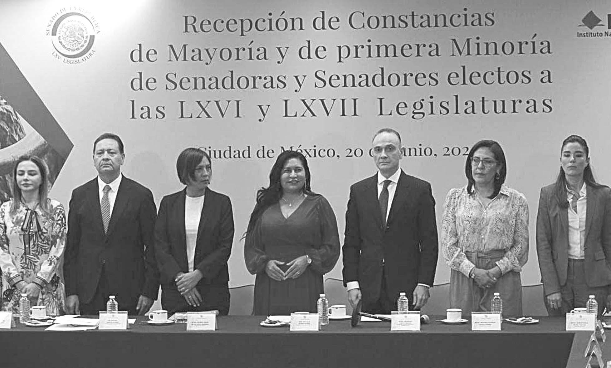 CIUDAD DE MÉXICO.- El Instituto Nacional Electoral (INE) inició ayer la entrega de constancias de mayoría relativa y primera minoría de candidaturas a senadurías que ganaron en las elecciones del 2 de junio y que integrarán la LXVI y LXVII Legislatura. En el acto protocolario, al que no asistió la consejera presidenta del INE, Guadalupe Taddei; Arturo Garita, secretario general de Servicios Parlamentarios, explicó que el objetivo del proceso es iniciar el proceso de renovación institucional del Senado al recibir las copias certificadas de las constancias que acreditan a los senadores electos por los principios de mayoría relativa y primera minoría. Las constancias fueron entregadas por los presidentes de los 32 consejos locales del INE. Precisó que los documentos que se recibieron conforman la primera parte del conjunto de expedientes que permitirán a la Secretaría General de Servicios Parlamentarios identificar a aquellos senadores que deban integrar la mesa de decanos, “nos permitirá integrar la lista de los senadores que integrarán la nueva legislatura. A partir de lo anterior, se extenderá la convocatoria a las y los senadores electos para que asistan a la sesión constitutiva que se llevará acabo el 29 de agosto”.