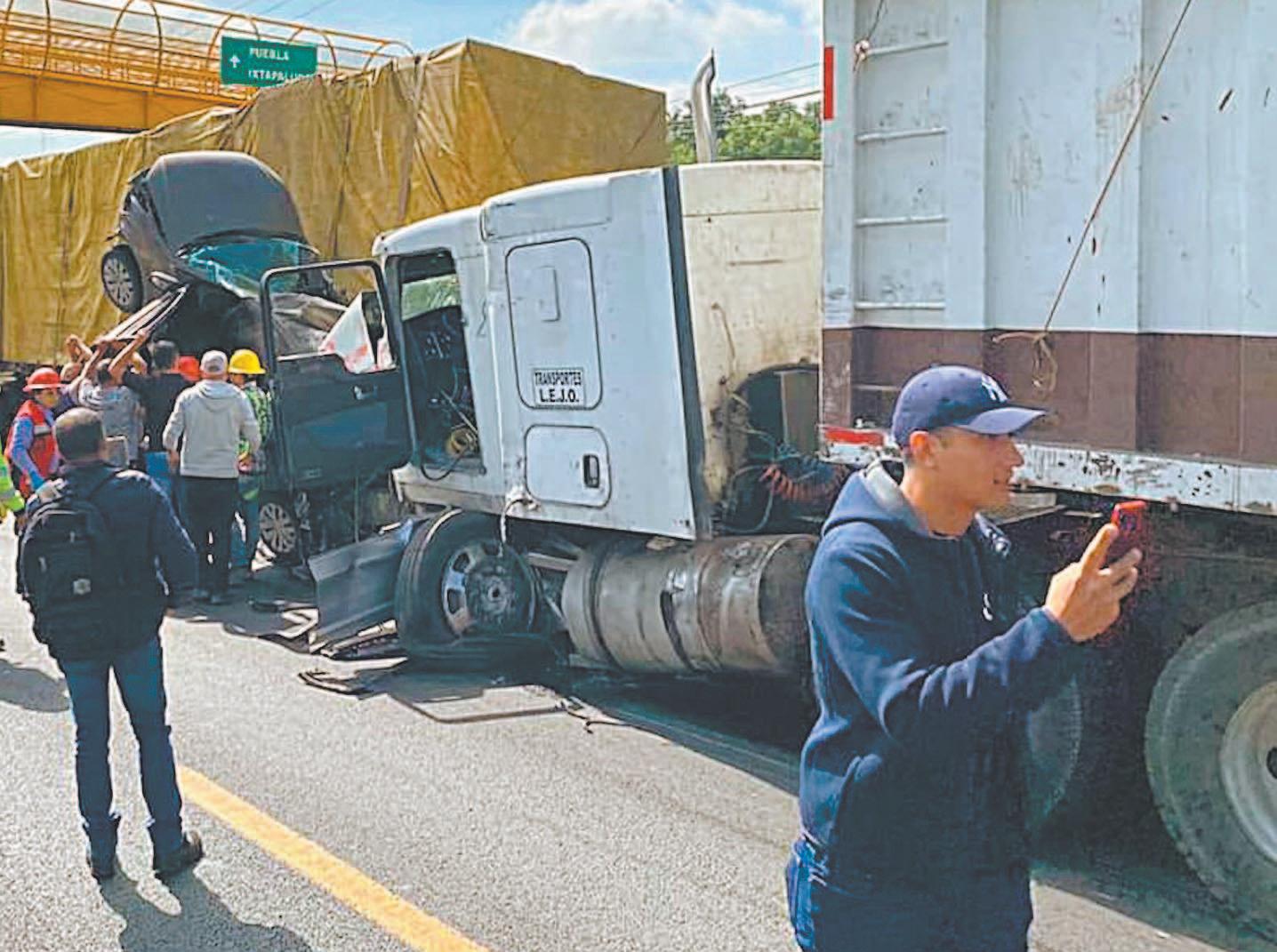 Tráiler se queda sin frenos, choca en la MéxicoPuebla y deja a 12 heridos