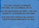 La Agencia de Contabilidad de Prisioneros de Guerra y Desaparecidos en Acción (Defense POW/MIA Accounting Agency) anunció que sus científicos identificaron positivamente en diciembre los restos del teniente coronel Donald W. Downing de Columbus, Wisconsin.