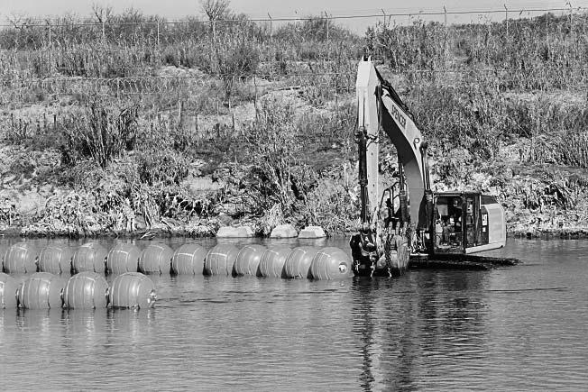 tegia coordinada que coincide con el inicio de la administración Trump. Las autoridades tejanas desplegaron el martes varias excavadoras y trabajadores en lanchas neumáticas para ampliar una barrera flotante existente cerca de Eagle Pass, según pudo observarse en imágenes captadas por drones desde la ciudad de Piedras Negras, Coahuila.