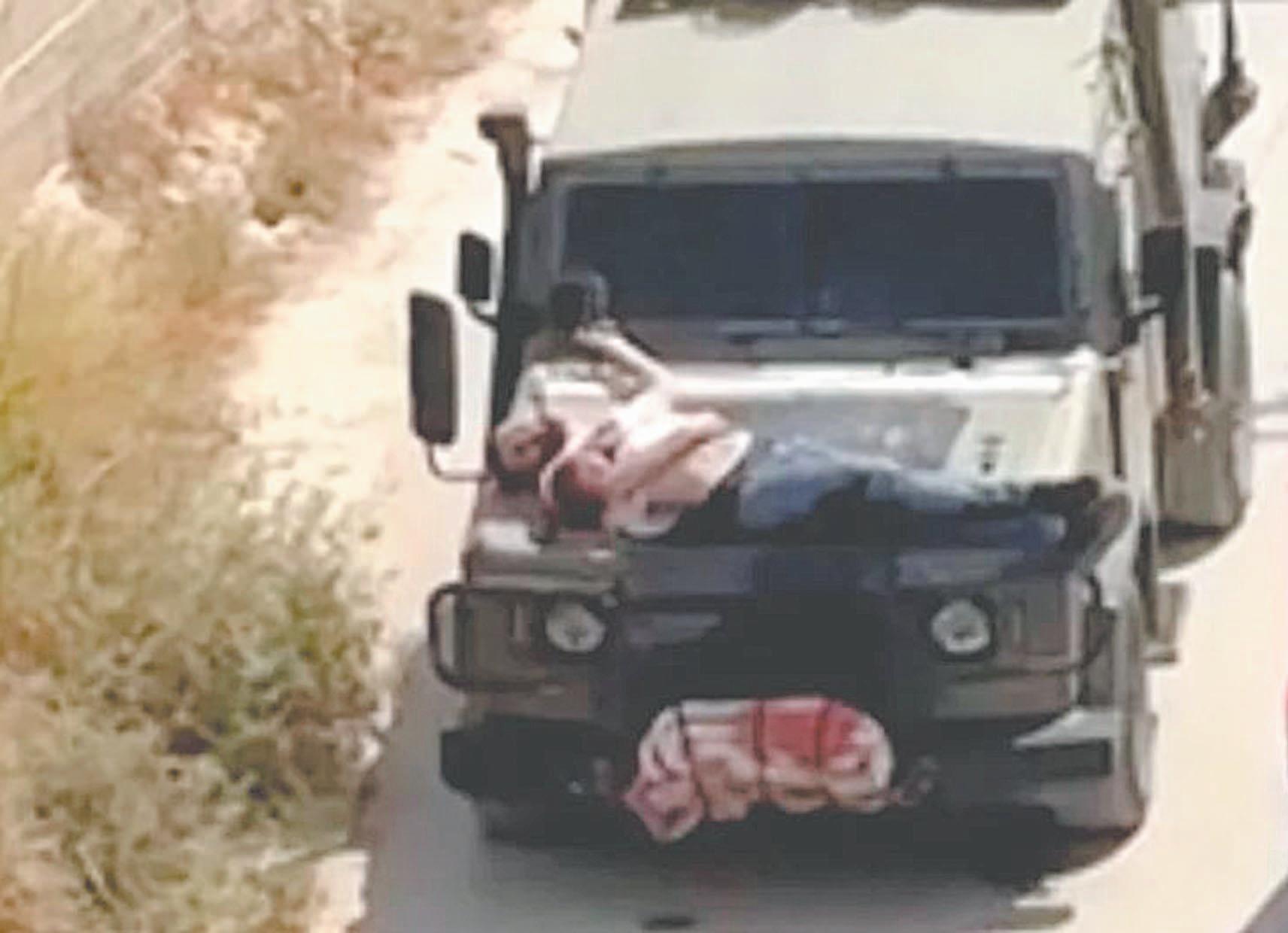 “En vulneración de las órdenes y estándares operativos, el sospechoso fue llevado por las fuerzas y atado al vehículo”, señaló el Ejército israelí, reconociendo que esta forma de actuar “no es conforme” a sus valores y que investigará lo ocurrido. (Agencias)