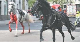 Varios caballos del Ejército británico que se escaparon ayer por la mañana, sembraron el pánico en el centro de Londres e hirieron al menos a cuatro personas antes de ser controlados. Imágenes espectaculares, compartidas en redes sociales, mostraron a dos de estos animales, uno blanco cubierto de sangre y otro negro, galopando a gran velocidad por una avenida, adelantando a una motocicleta y chocando contra un taxi tras pasar un semáforo en rojo.